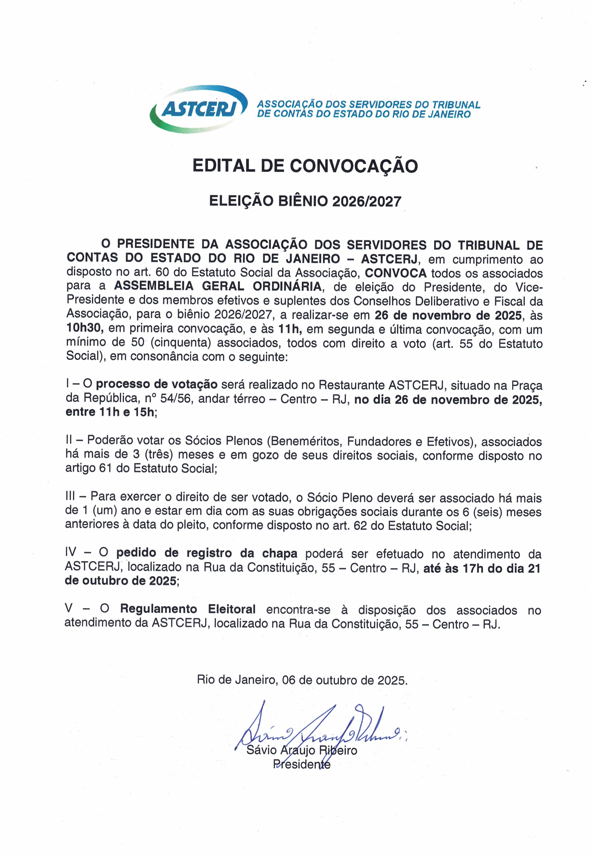 Edital de Convocação - Eleição Biênio 2026/2027