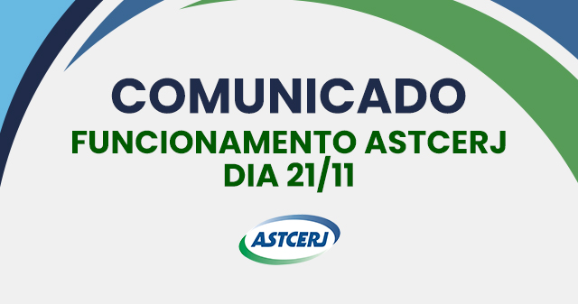 Informamos que, no dia 21/11 (sexta-feira), não haverá funcionamento na Sede da ASTCERJ.
